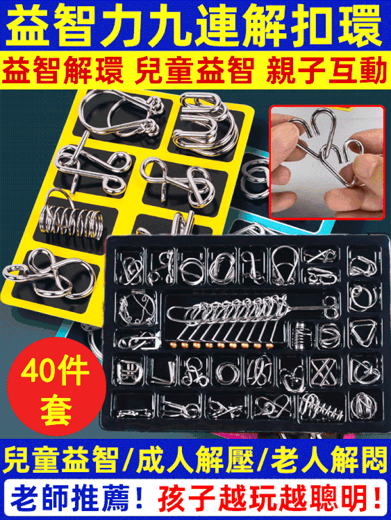 11分鐘前玩過這個孔明連環扣的孩子都比其他孩子聰明!鍛煉孩子空間想象力和邏輯思維能力! - 孔明連環扣益智40入套裝2入組 NT$1350